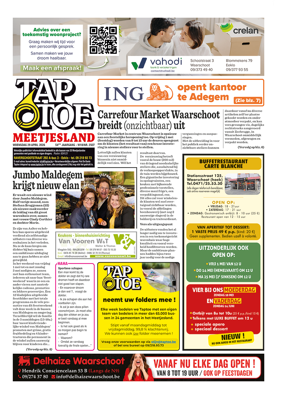 Starten kan tussen 13 en 16 uur op de parking van Het Leen, in ecotuin De Vrede (Bellemstraat 121 in Aalter) of op de Drongengoedhoeve (parkeren doe je op de randparkings rond het Drongengoed). De infopunten onderweg zijn open tot 18 uur. Inschrijven kan ter plaatse aan de inschrijvingsstand, waar je het routeplannetje en een fietssticker krijgt met de knooppunten op. Via een QR-code kan je het gpx-bestand met de route opladen in je smartphone of fietscomputer. Deelnemen kost 2 euro, betalen doe je cash. De meest actuele informatie vind je op www.NPMeetjesland.be/bloesemfietstocht of contacteer Natuurpunt & Partners Meetjesland op 09 377 93 00. (PDB)